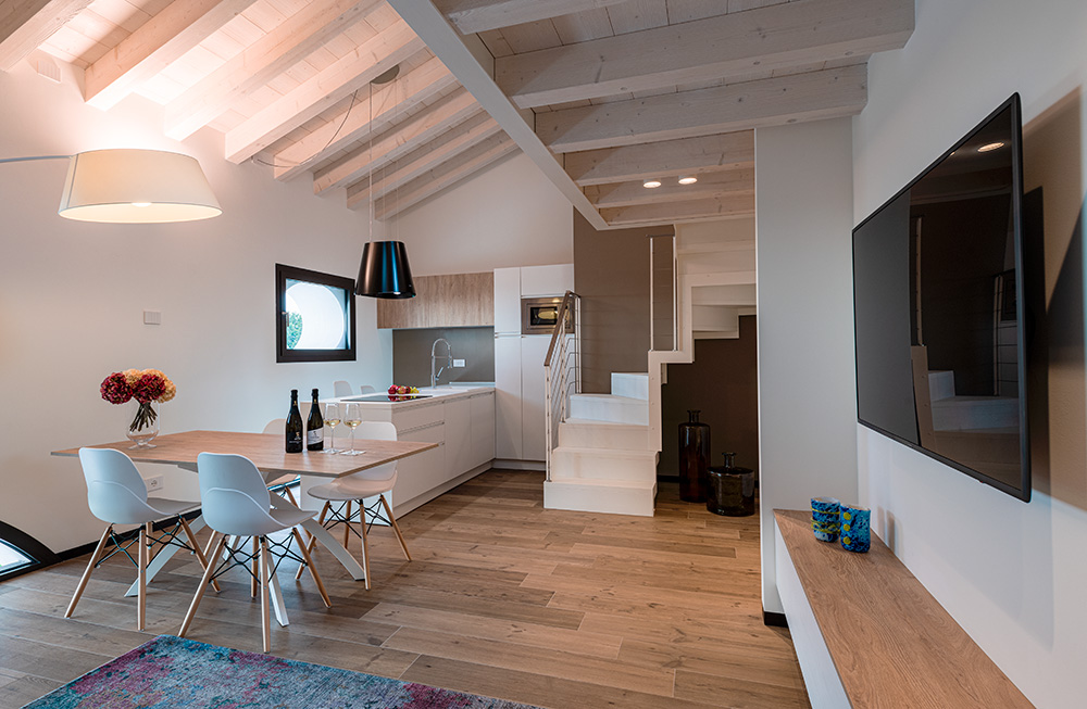 Richiedi disponibilitàUna delicata eleganza in stile contemporaneo contraddistingue gli spazi dell’appartamento mansardato LE GROTTE, caratterizzati da una fresca tonalità verde vegetazione, grande protagonista del territorio asolano, in profonda sintonia con la natura.