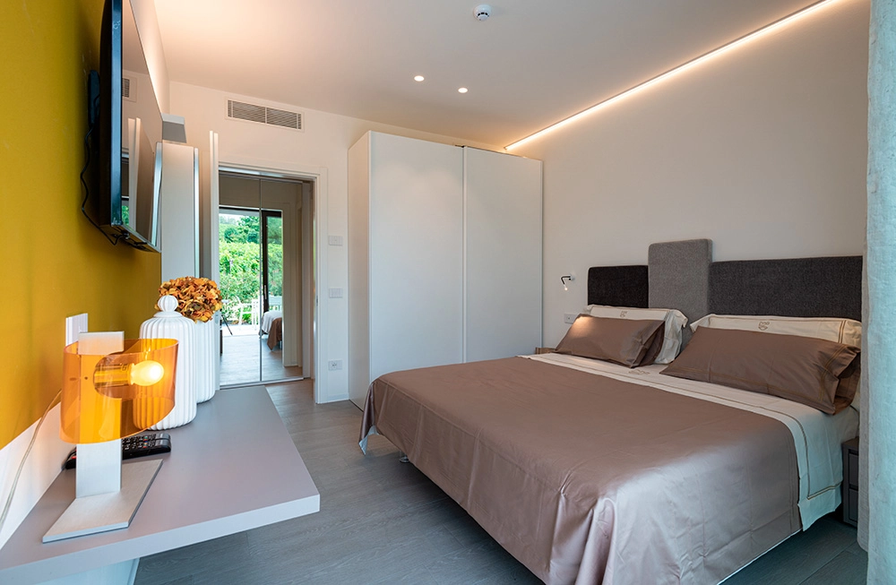 Yellow like gold, a symbol of riches, elegance and ancient nobility. This is the dominant colour of LE VILLE apartment, a well-lit flat offering all kinds of amenities, inspired by the luxury of the historical residences that embroider the Asolo hills, reinterpreted with a contemporary twist.