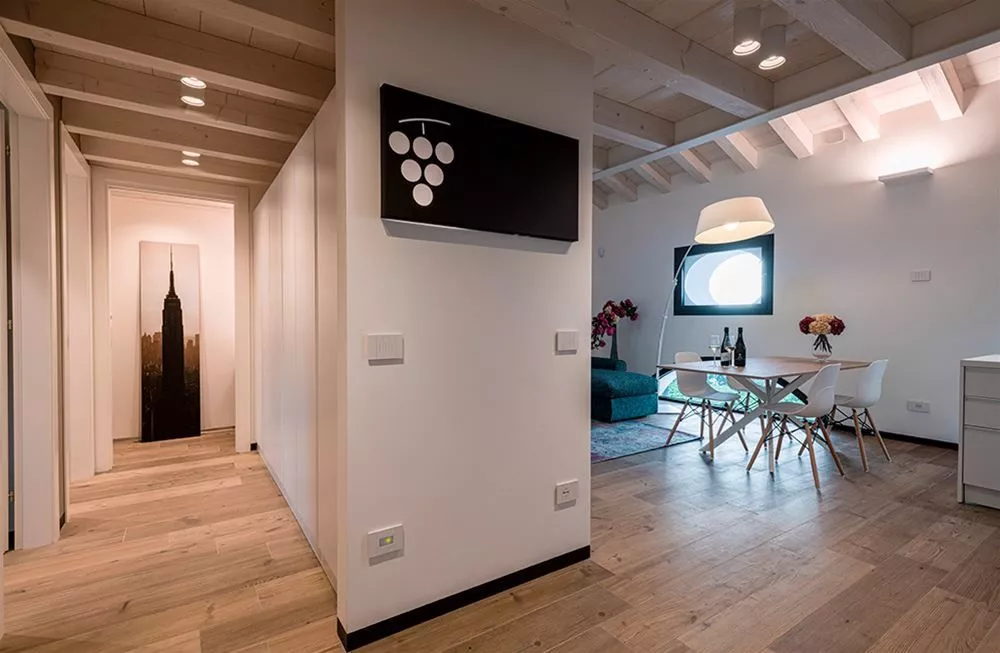 Ispirato nel nome alla bellezza della cascata dei preziosi e profumati grappoli che si scorgono dalle finestre, l’appartamento suite prende forma da un gioco di volumi e linee architettoniche minimaliste in stile contemporaneo esaltate dalla suggestiva luminosità e ariosità degli ambienti.