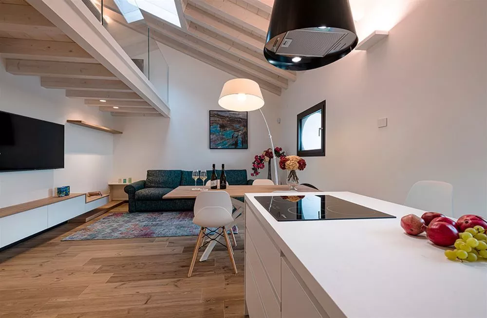 Grandi spazi, aperture panoramiche sui vigneti e grande cura dei particolari contraddistinguono l’appartamento suite mansardato IL GRAPPOLO che propone, in aggiunta alla zona soggiorno-cucina e al reparto notte, un ampio soppalco che accoglie una seconda confortevole camera da letto.